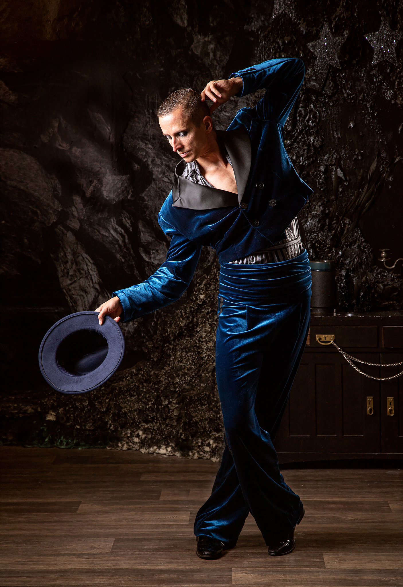 Silnější postavě pomůže, když ji částečně „schováte“: nechte klienta opřít se o stůl nebo auto, nebo pracujte s výřezem. Uleví se mu a výsledek bude působit přirozeněji. Pokud nic z toho nemáte, nebo je to na fotce nežádoucí, pracujte se světlem. Poproste klienta, ať se oblékne do tmavého oblečení a postavu schovejte ve stínech.