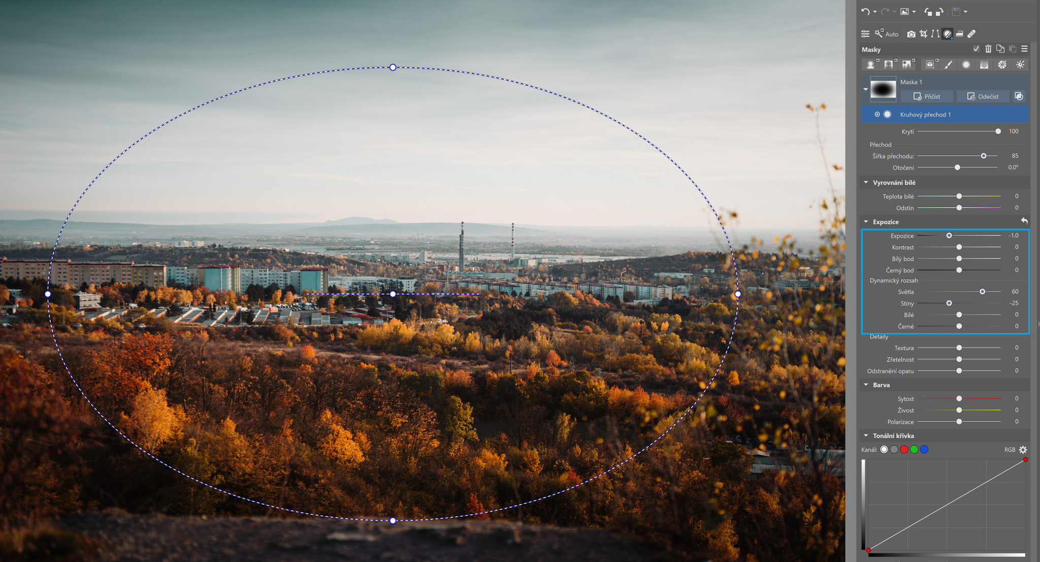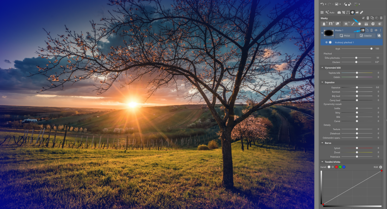 K čemu se nejčastěji používá Kruhový přechod v Zoner Studiu? Nejčastěji ke zvýraznění hlavního motivu, ale také k lokálním úpravám expozice, barev, ostrosti nebo světla.