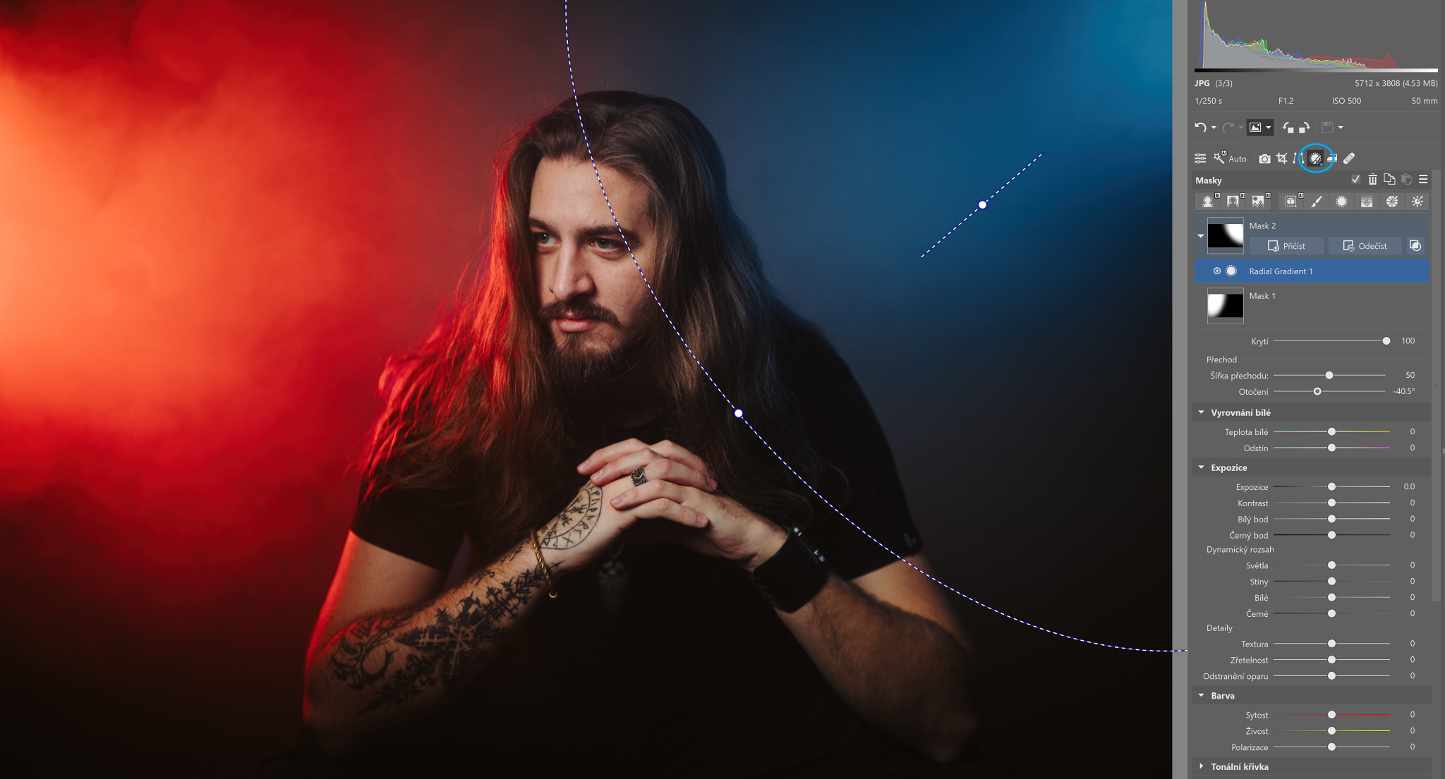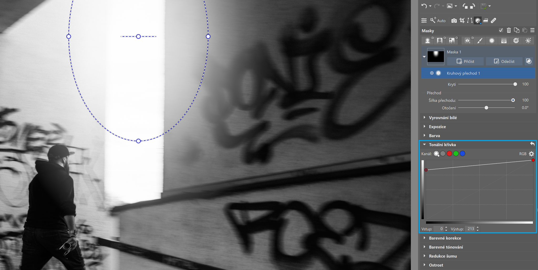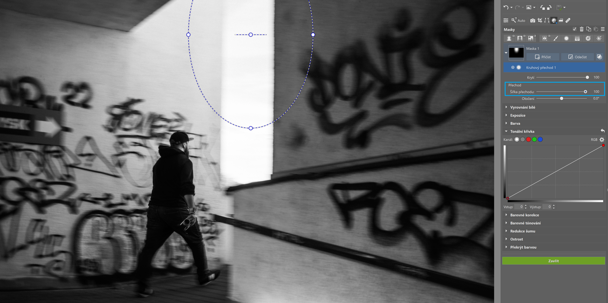 Je vhodné používat Kruhový přechod i na portréty? Ano, zejména při úpravách barev, světla nebo jemném zvýraznění obličeje. Výhodou je, že neovlivní barvy pleti mimo vybranou oblast.