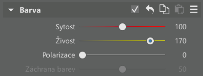 Oproti základní verzi byla zvýšená Živost na 170 a Kontrast na +50.