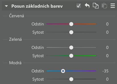 Vyrovnání bílé dokáže pozměnit barvy, ale pomoci si můžete i jinými způsoby a jeden z nich se skrývá v panelu Posun základních barev. Základními barvami jsou zde myšlené ty, které tvoří každý pixel. Víme, že to je červená, zelená a modrá, ale které konkrétní barvy to jsou? To právě můžete ovlivnit v tomto panelu a tak i výrazně změnit celý obrázek. Vaše nová „základní červená“ může být tedy klidně víc do oranžova a sytější.