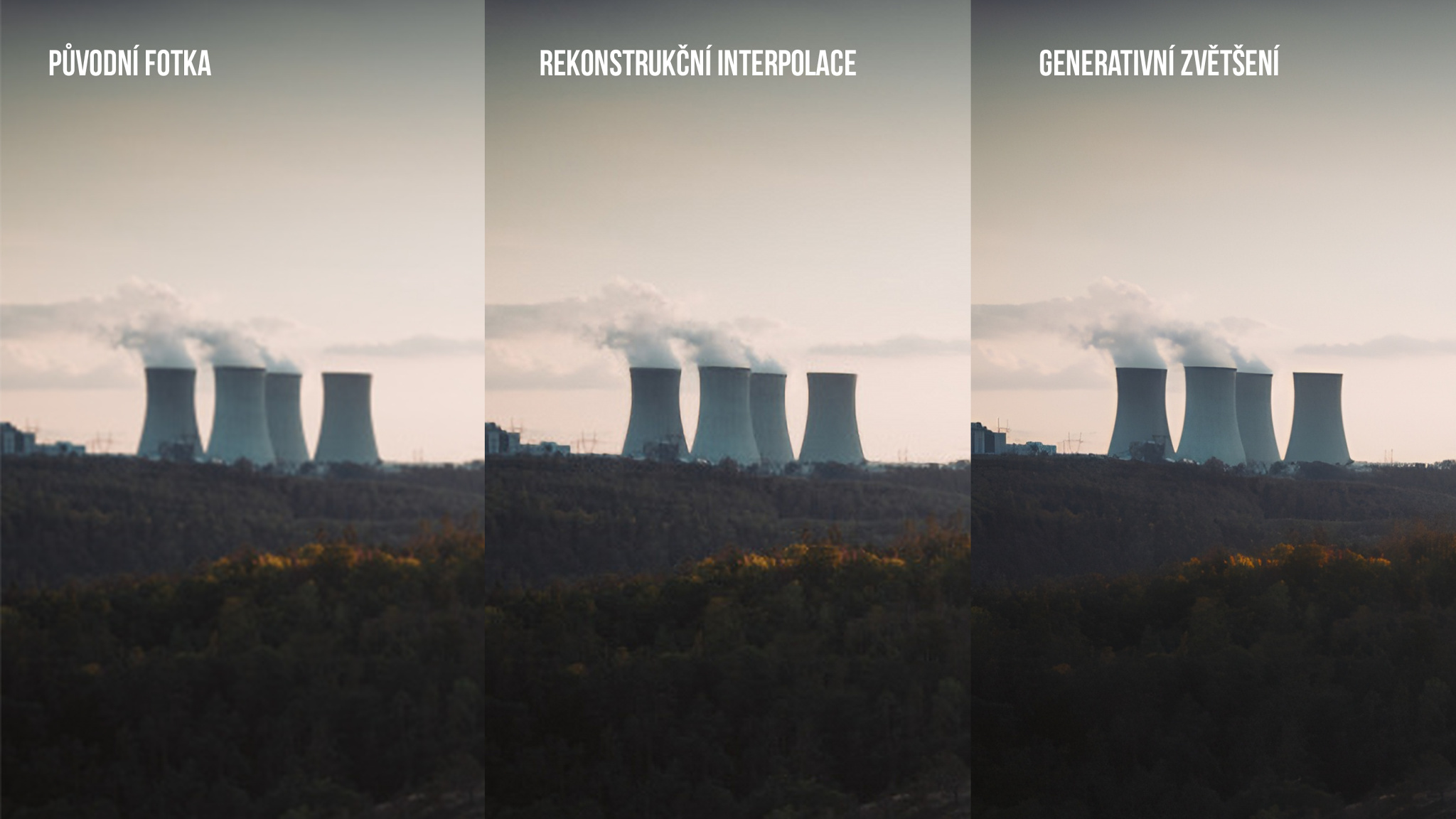 Toto porovnání doporučujeme vyzkoušet na vlastních fotkách. Z výsledků je celkem patrné, že Rekonstrukční interpolace fotku zásadně vylepšuje. Generativní zvětšení pak funguje ještě lépe, ale někdy může být patrné, že některé detaily jsou vymyšlené – to je běžná vlastnost této metody a nejedná se o chybu.