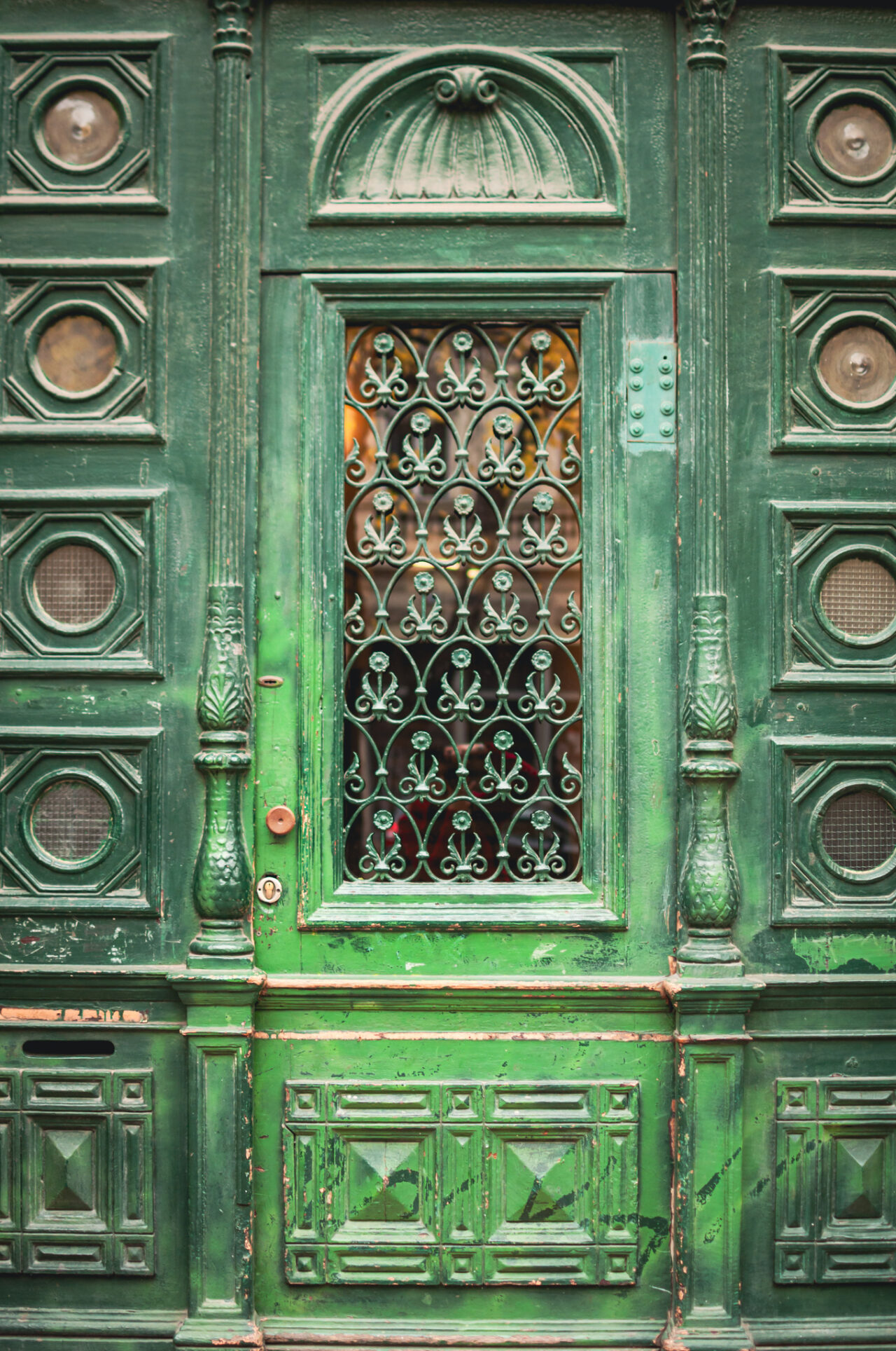 Například v Budapešti najdete spoustu výrazně barevných dveří. Zelená je barvou klidu, života a rovnováhy. V zimě působí skoro nepatřičně, a právě proto působí silně. Připomíná přírodu a svěžest v prostředí betonu a asfaltu.