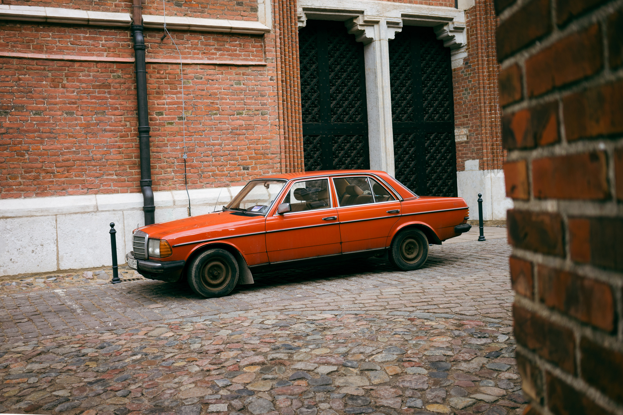 Městská architektura je v zimě ideální kulisou pro práci s barvou. Barevná vrata nebo schodiště vyniknou víc než v létě, protože nejsou obklopená vizuálním šumem. Sledujte i fasády, obklady nebo jednoduché grafické prvky.