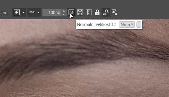 Při práci vždy kontrolujte fotografii v náhledu 100 % (1:1), abyste viděli skutečný efekt.