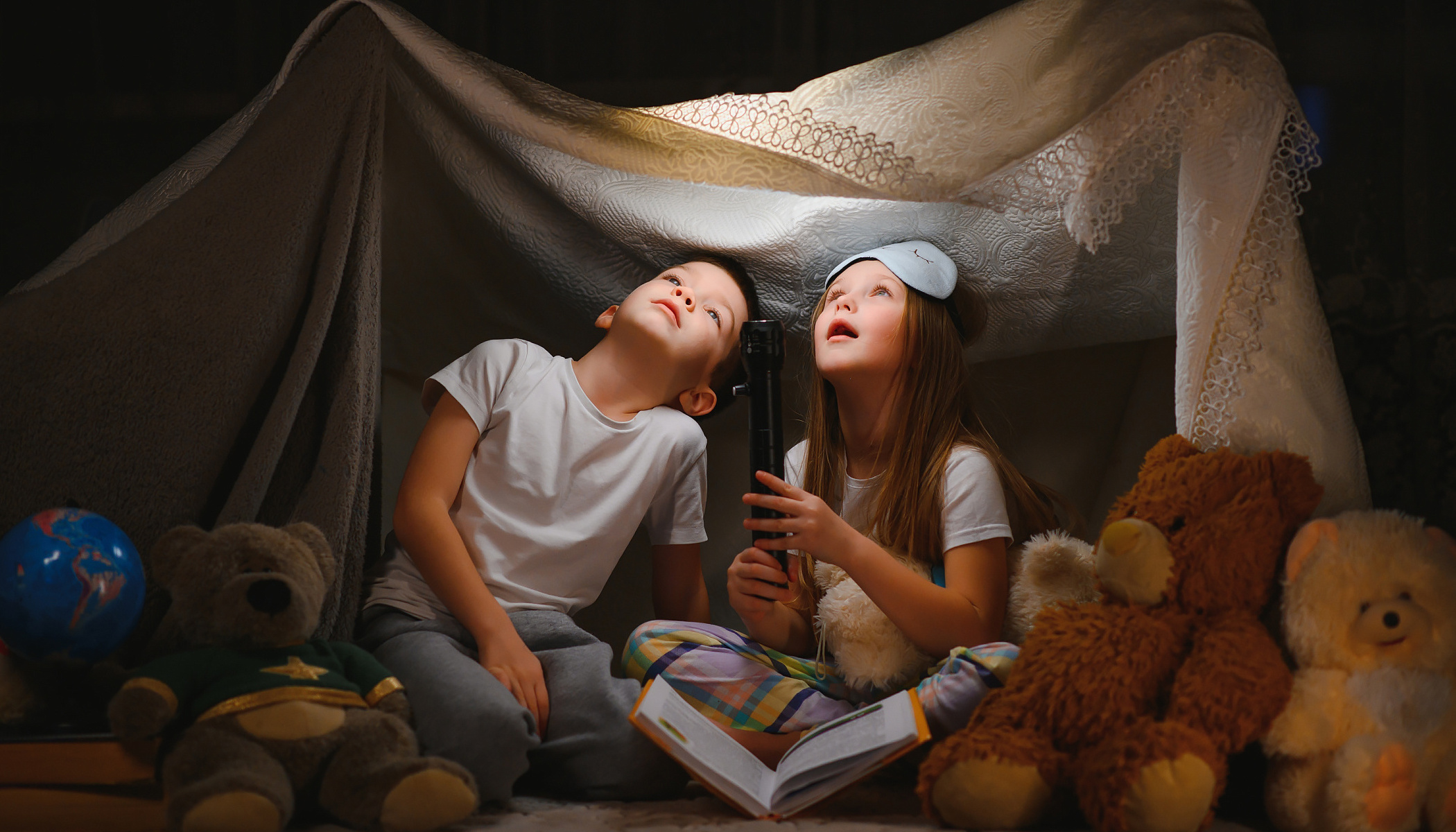 Velmi dobře funguje třeba obyčejná baterka v ruce dítěte. Může si s ní svítit na zem nebo do nějakého předmětu a vy jen využijete světlo, které sama vytváří. Podobně může posloužit lampička ve tvaru knížky, světýlko schované v krabičce, do které dítě něco hledá, nebo jakýkoliv jiný drobný zdroj světla, který má ve vaší scéně logiku.
