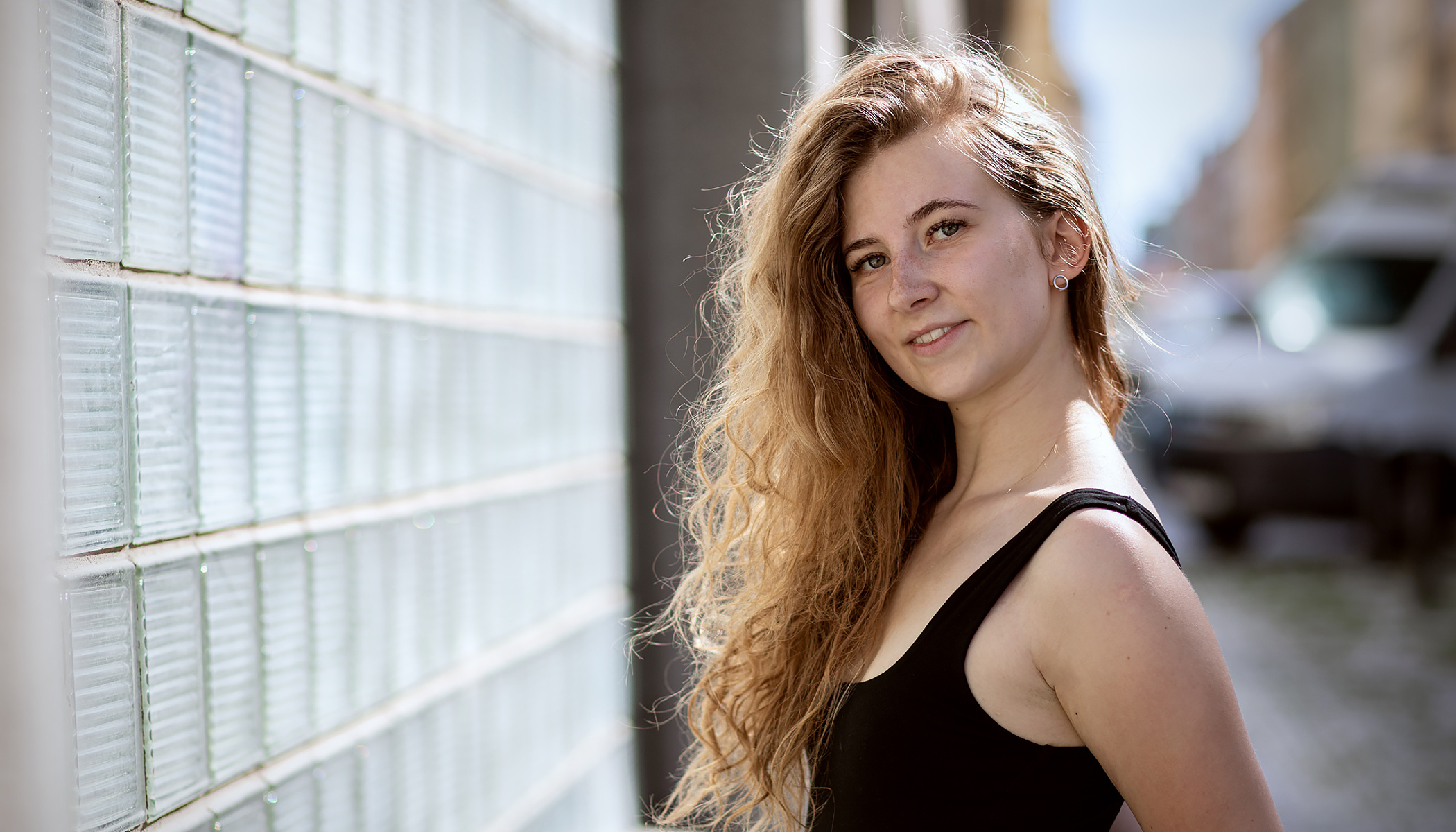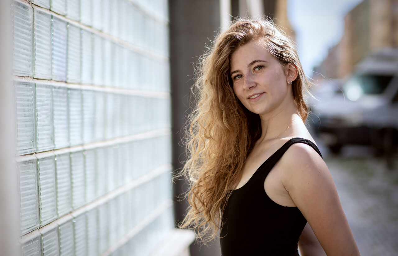 Ve městě máme jeden velký bonus – spoustu vysokých domů a světlých zdí. Každý vysoký dům má alespoň jednu stěnu, na kterou dopadá slunce. A to znamená, že se od ní také odráží. Jak už víme, měkké světlo vychází z velkých zdrojů. Velká nasvícená plocha se pak chová jako obrovský difuzér, který světlo změkčí a vrátí nám ho zpět. Výsledkem je rovnoměrné a jemné nasvícení, které je na portréty ideální. Pleť působí hladší, stíny nejsou tak tvrdé a oči se konečně nemusejí schovávat pod víčky.