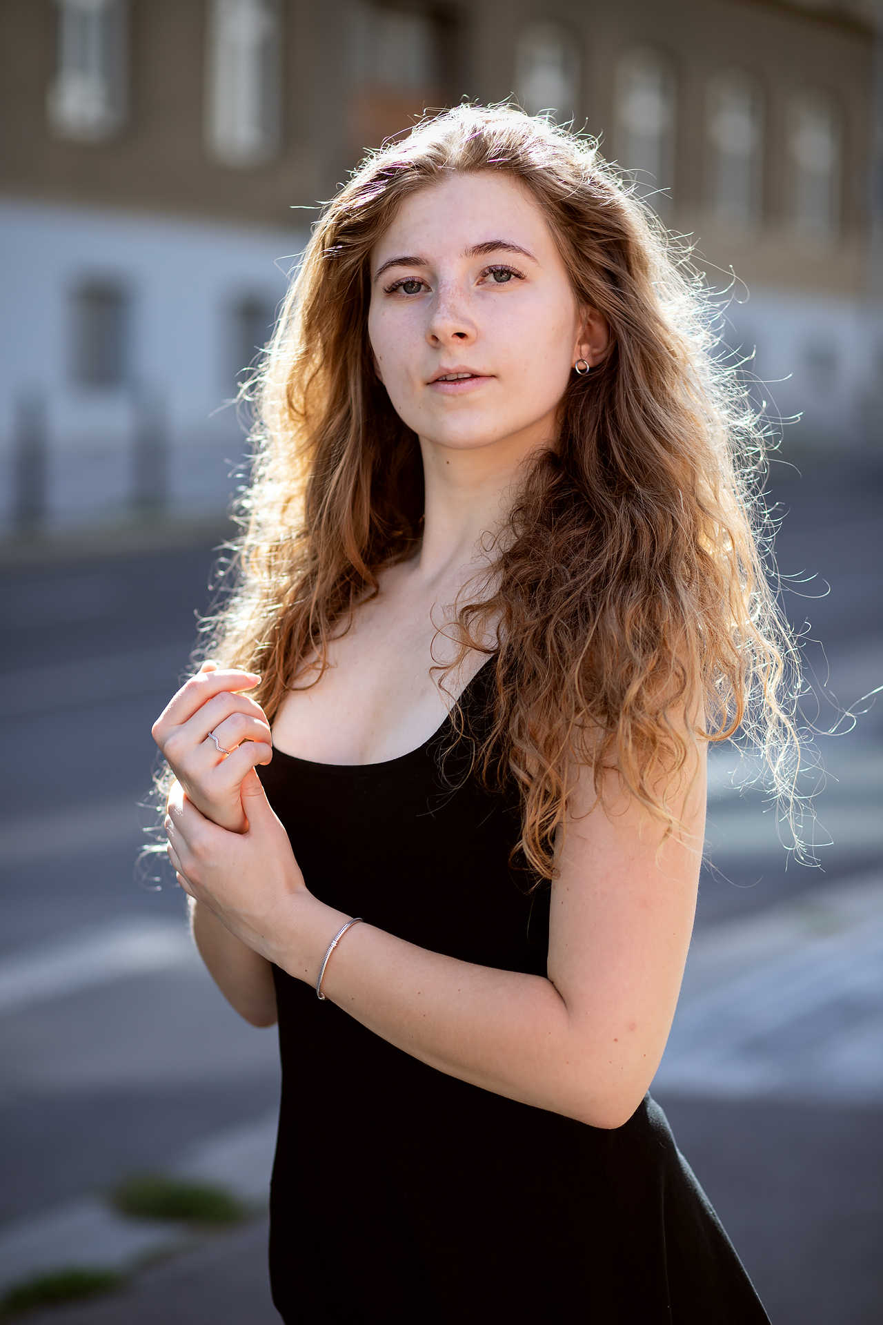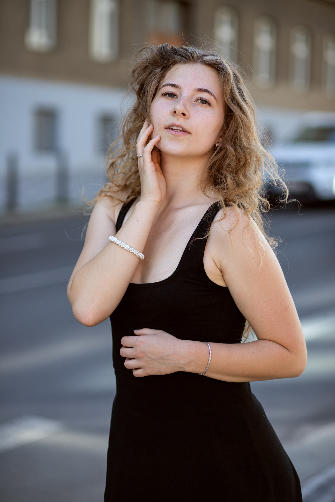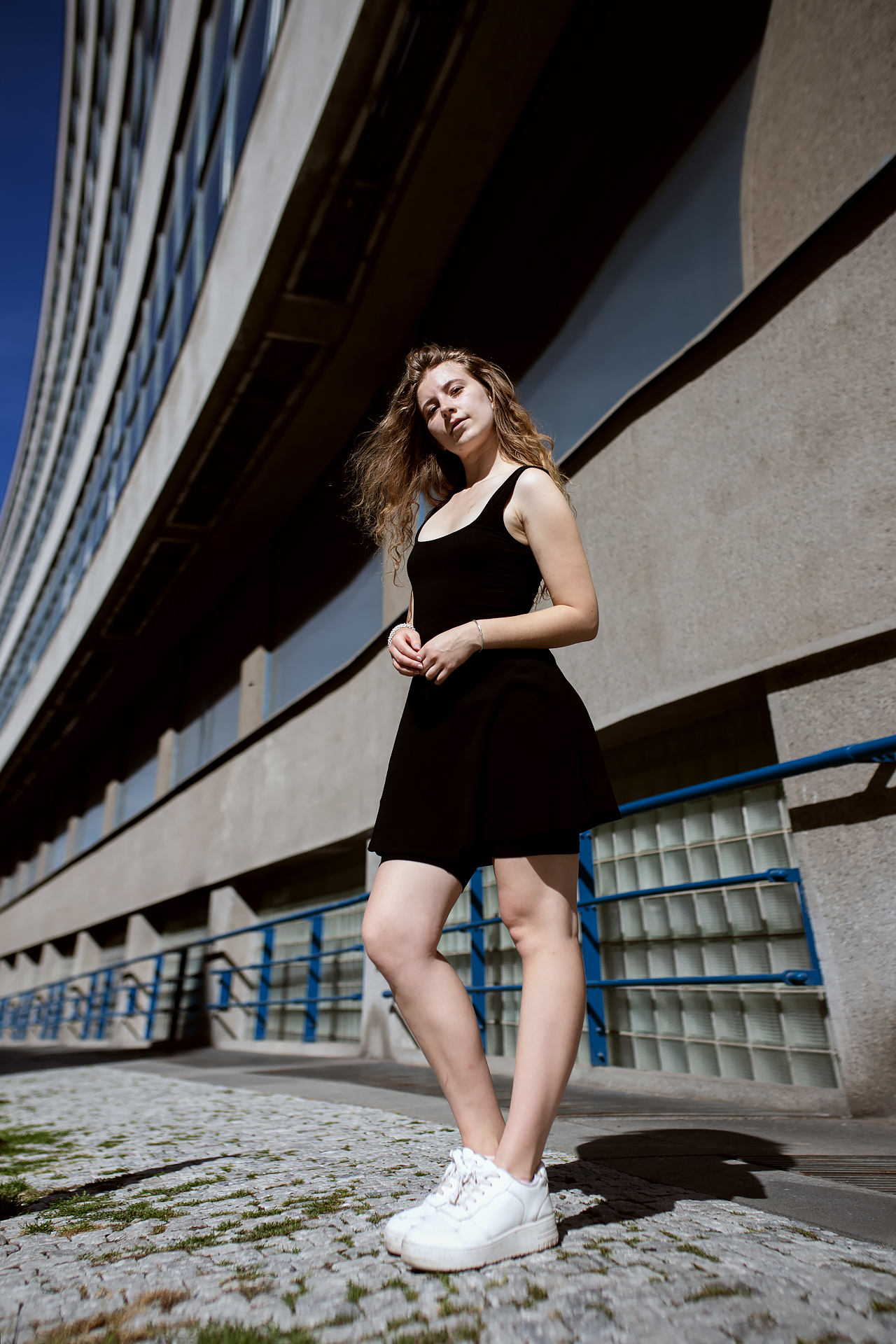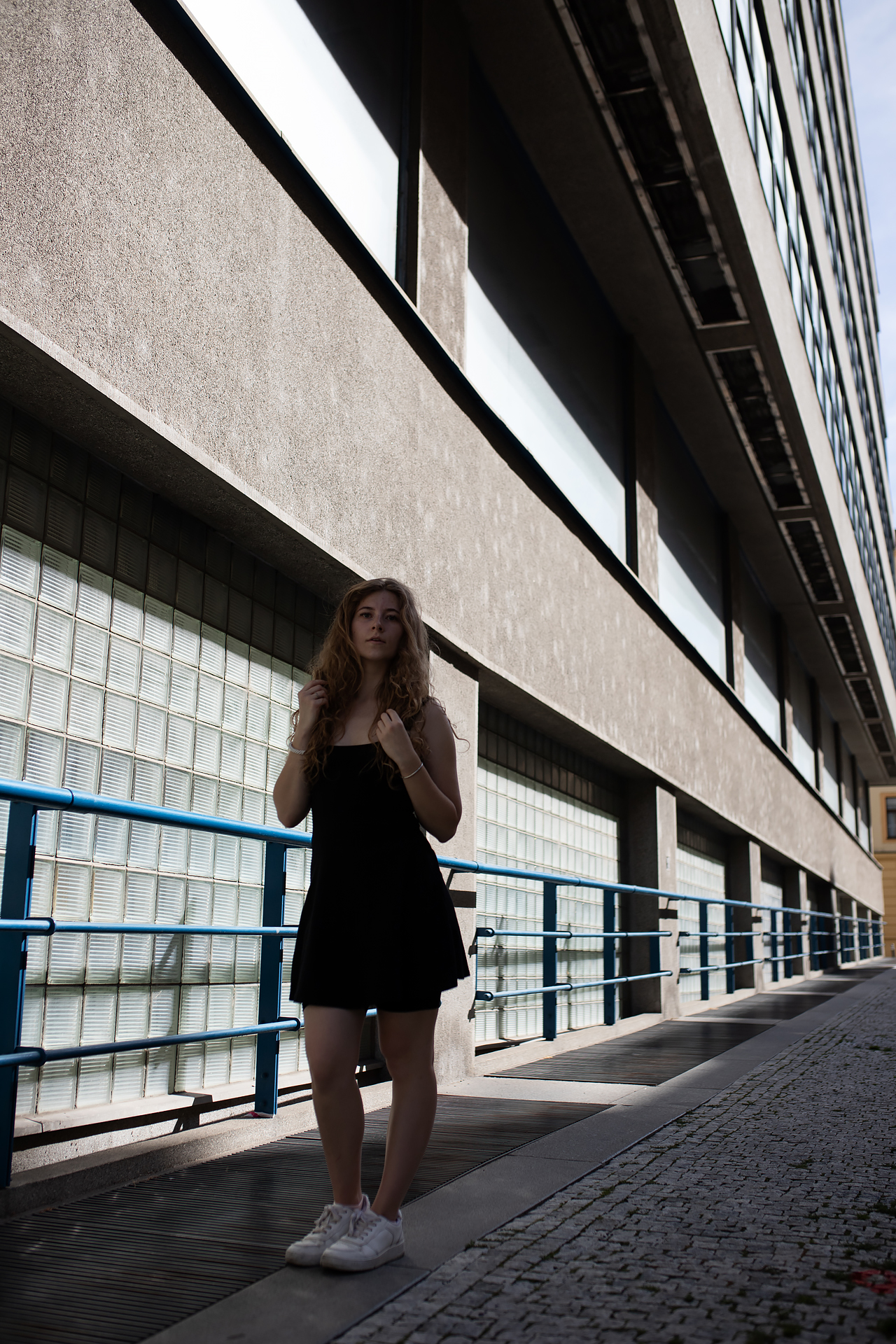 S Adelou jsme se sešly odpoledne, kdy sluníčko bylo ještě vysoko. Pražská ulice Veletržní, kde jsme začaly fotit, se zkrátka nepovažuje za Mekku pro fotografy: intenzivní provoz, zaparkovaná auta a vysoké domy. Tento světelný oříšek jsme ale dokázaly vyřešit.