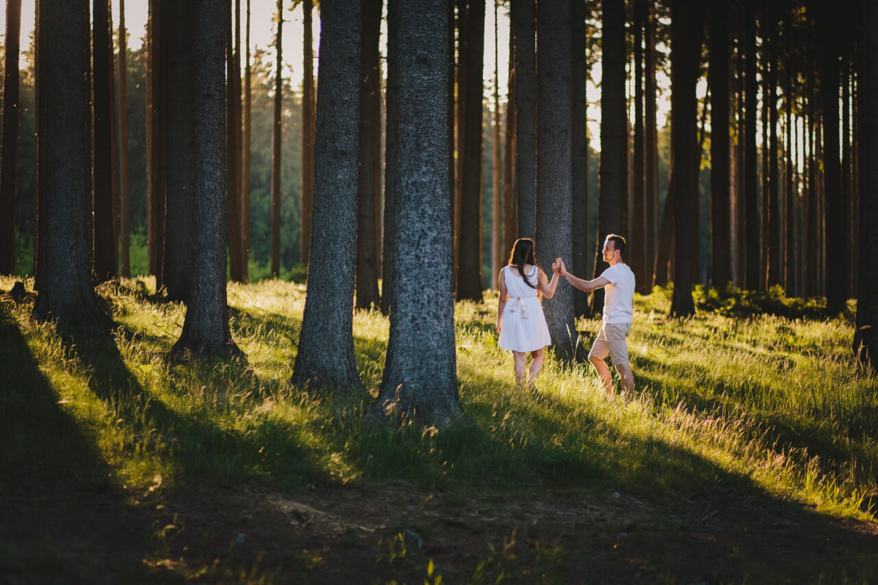 Mnohem víc se mi proto osvědčilo prostě se přímému slunci úplně vyhnout. V městech dobře funguje stín, obzvlášť pokud najdete světlou fasádu, která dobře odráží světlo. V přírodě zase dobře funguje les, ve kterém o větší zastíněné plochy není nikdy nouze. Případně můžete váš pár vzít do interiéru, který navíc funguje jako skvělá záloha pro případ deště. Když vybírám místo na párové focení, snažím se mít všechny tyhle alternativy ve svém dosahu.