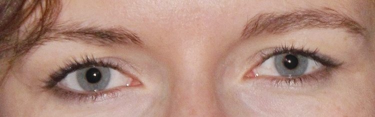 Podívejme se na jeden příklad. Fotku jsem pořídil v zatemněné místnosti, takže zorničky fotografované zůstaly roztažené, a tak sítnice odráží dopadající světlo z blesku.