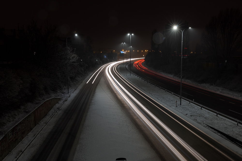 Na závěr tedy finální obrázek po smazání světel z blinkrů, rozmazaných vloček a zjemnění ostrých konců aut: