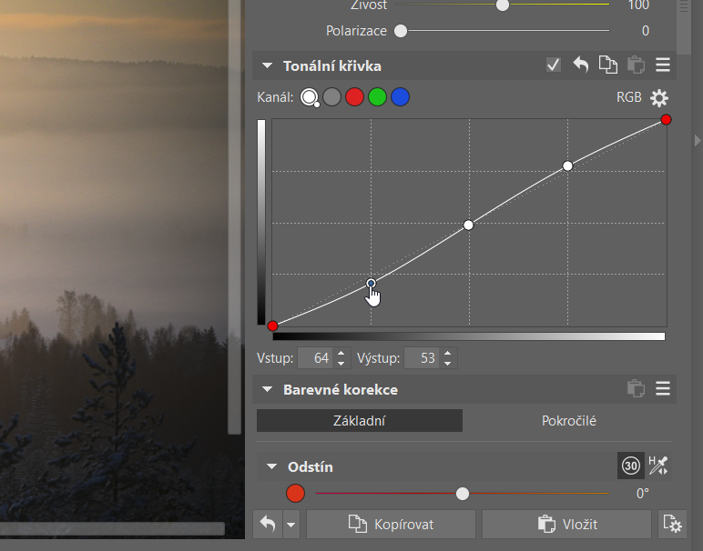 V praxi to funguje tak, že ztmavíte stíny (levá část křivky) a zesvětlíte již světlé části (pravá strana). Čím více levý bod snížíte a pravý zvýšíte, tím více kontrastu ve snímku vytvoříte. Obvykle používám jemné S-křivky, ale rozhodně stojí za to s nimi experimentovat podle konkrétní fotografie.