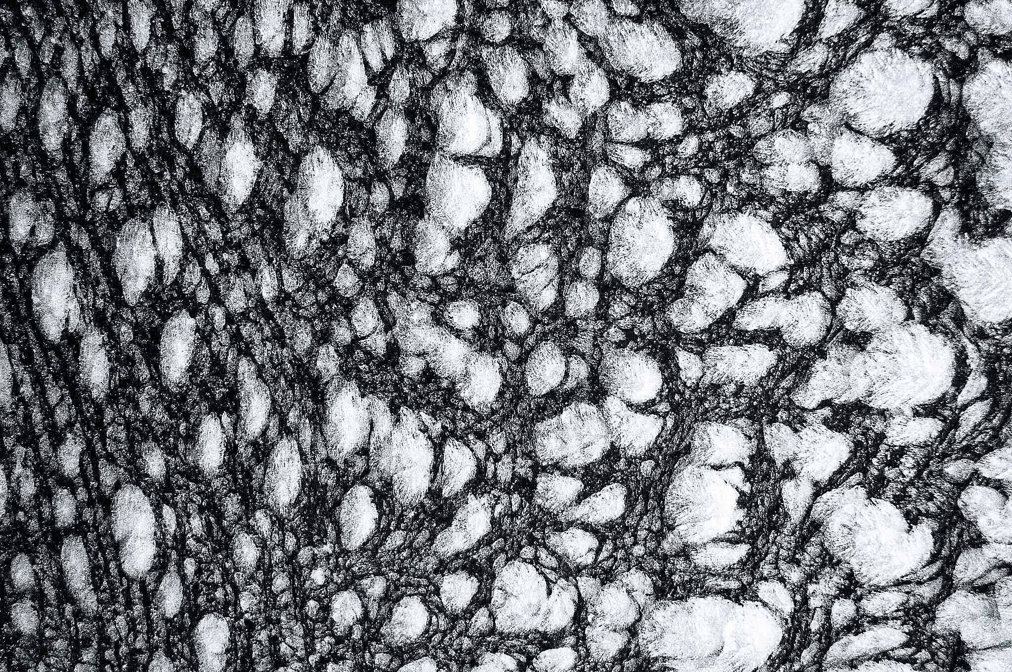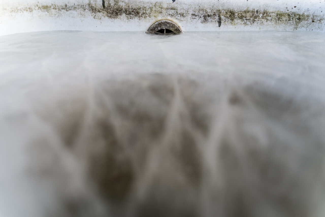 Led, v tomto případě ve vaně, tvoří neobvyklé obrazce. Záměrně jsem mu úpravou ubrala jemnost, ale Zřetelností a zvýšením kontrastu mu dodala tvrdost až zlověstnost. f/2.8, 1/400 s, ISO 100, 28 mm.