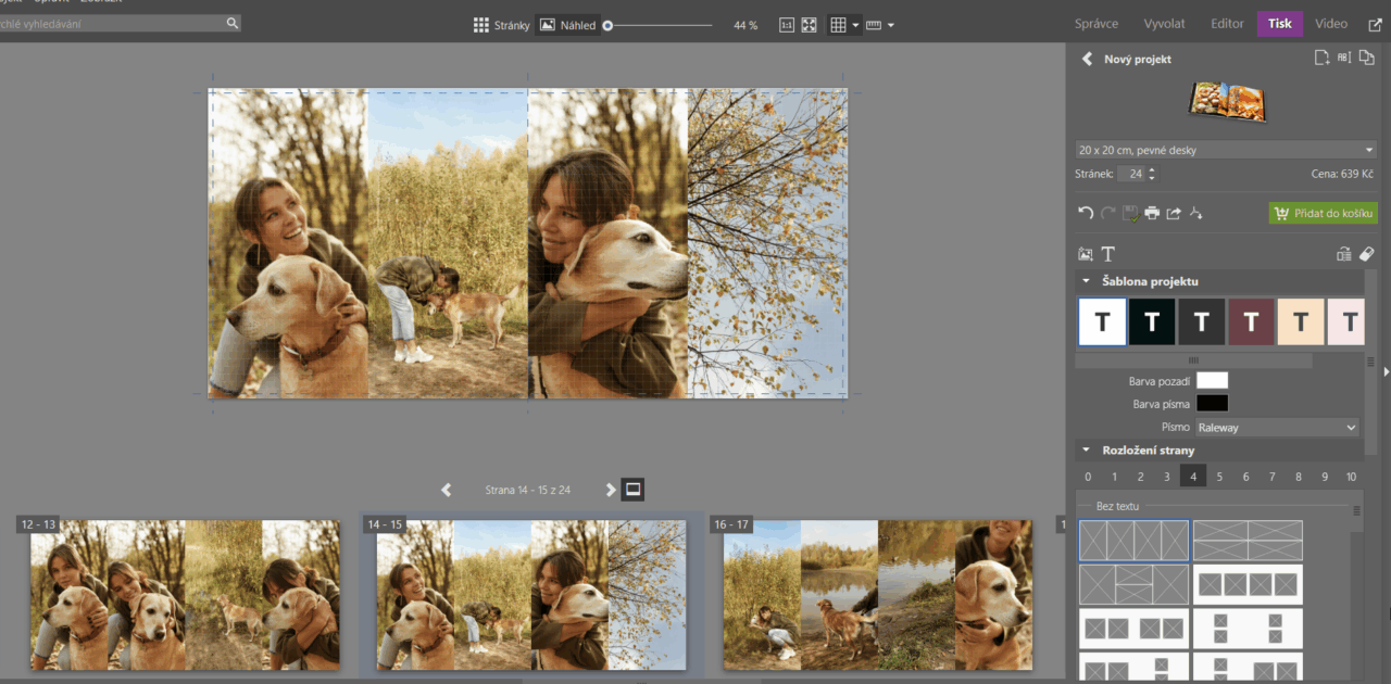 Nově lze také měnit pořadí fotek přetažením a upravovat rozložení bez nutnosti otevírat jednotlivé stránky. Výsledkem je přirozenější práce s celou knihou a rychlejší úpravy.