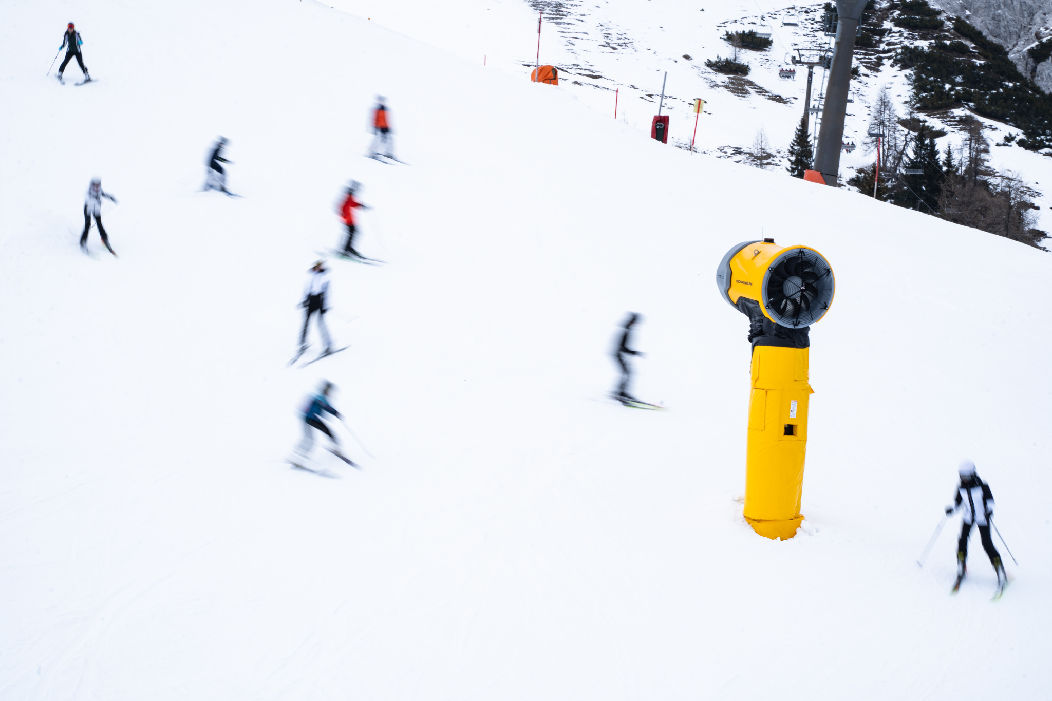 Pohyb, dynamiku a měřítko dodávají zimním snímkům třeba lyžaři. Tím, že se koncentrují na jednom místě – na sjezdovce – a jejich pohyb je předvídatelný, nabízí se dostatek času pro experimentování s dlouhým časem závěrky.
