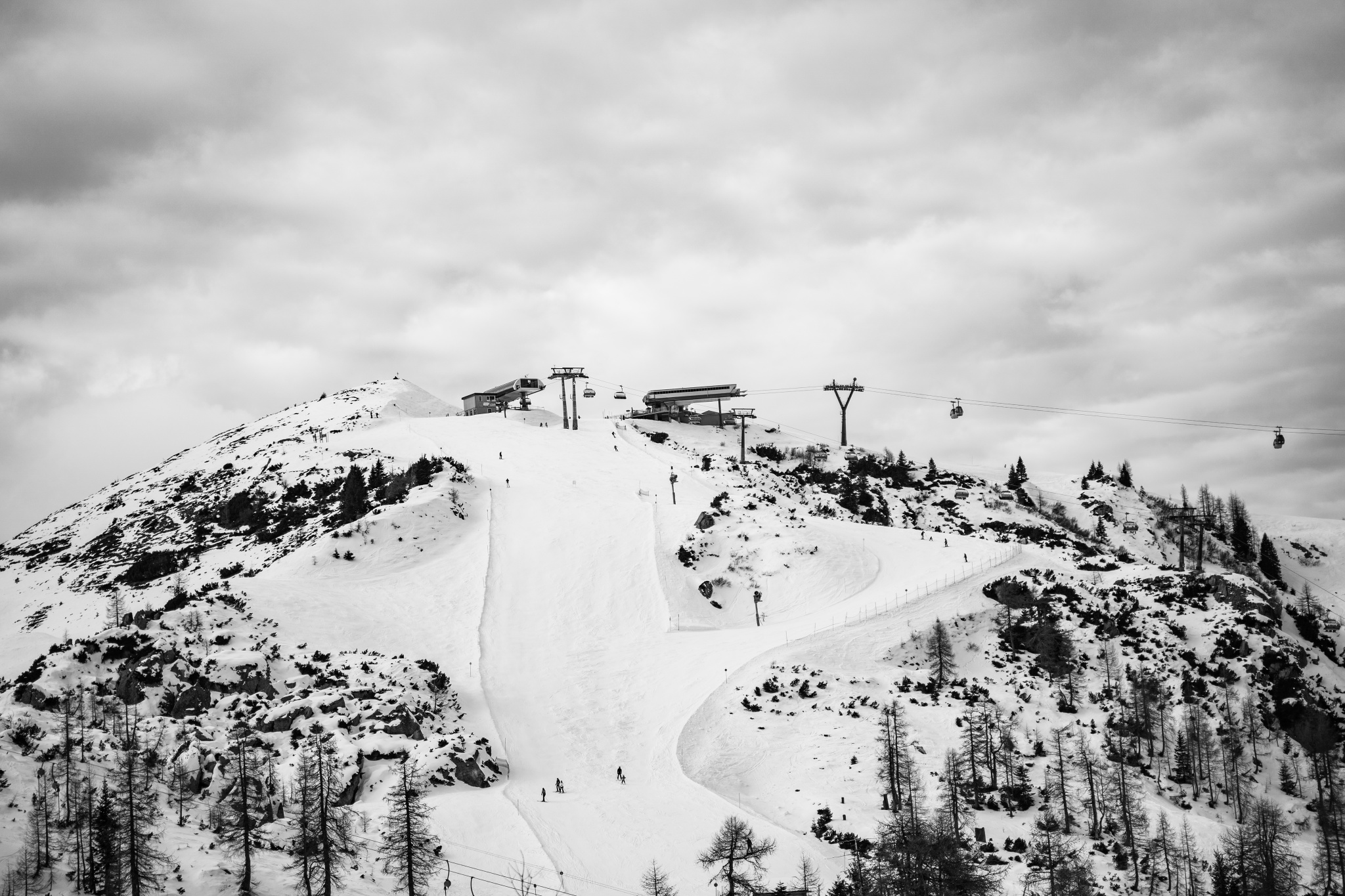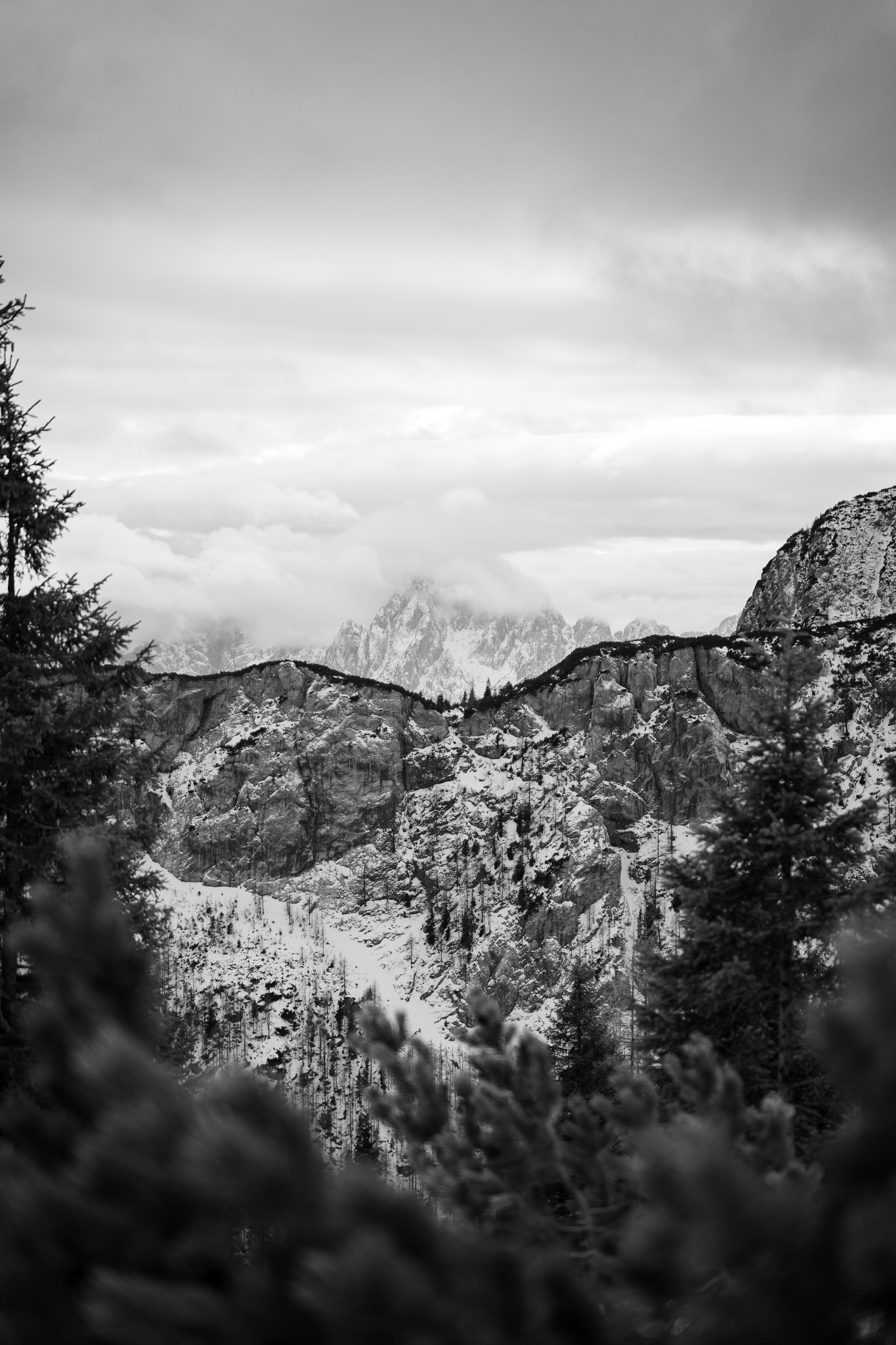 Zimní hory jsou přirozeným kandidátem pro černobílou zimní fotografii. Sníh vytváří ideální základ – sjednocuje plochy, zjednodušuje scénu a umožňuje soustředit se na světlo a tvary místo barev. Právě díky tomu může černobílá pomoci zdůraznit podstatu horské krajiny.