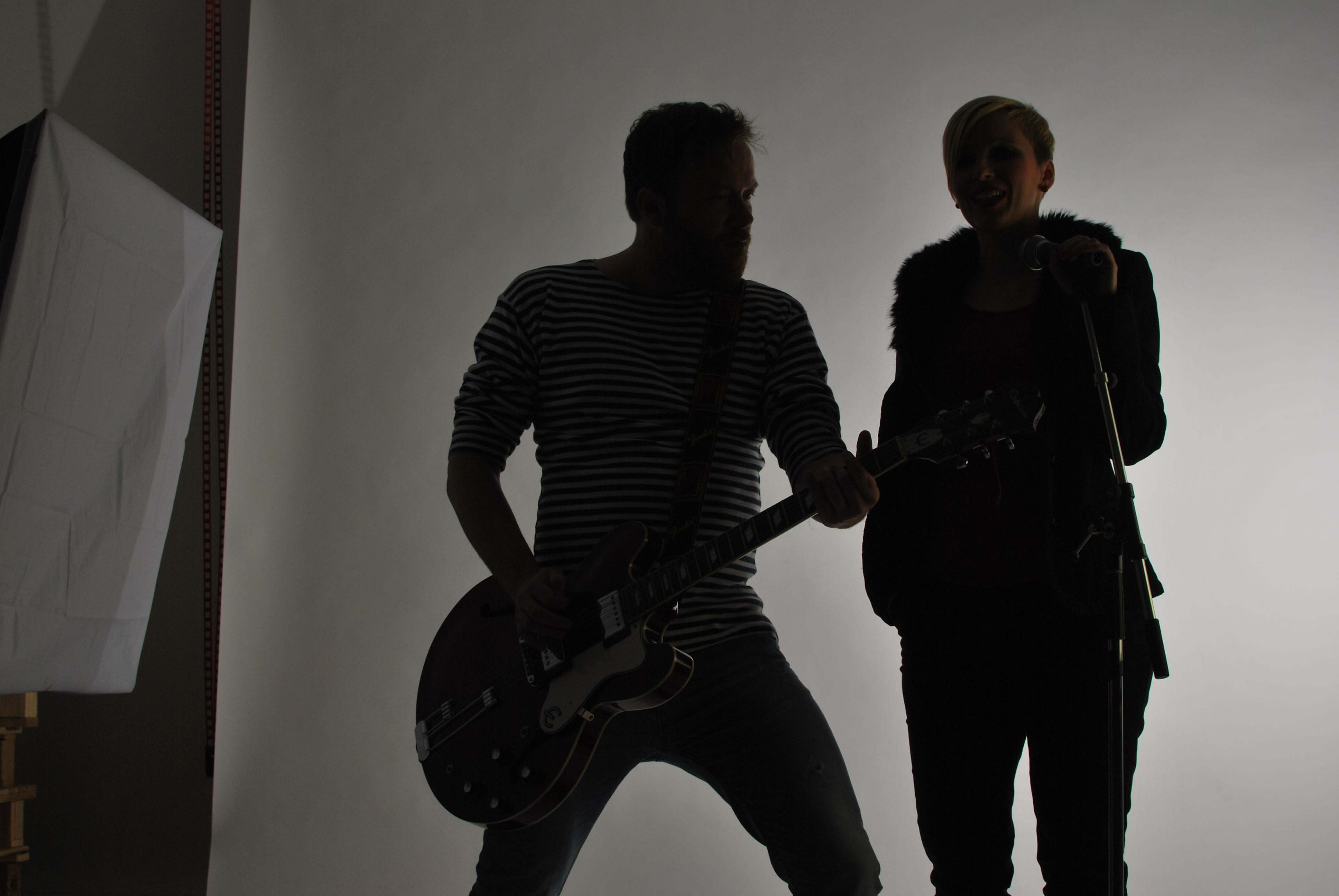 Jako hlavní světlo jsem použila jeden blesk s velkým softboxem, na druhé straně byla umístěná odrazná deska pro eliminaci ostrých stínů v obličeji. Druhý blesk jsem chvíli používala na přisvětlení pozadí, ale pak jsem ho přestala používat úplně, protože pro rovnoměrně osvětlené pozadí by musel být umístěný za fotografovanými osobami a tam se pletl. Vypnutí blesku na pozadí mělo za následek pozadí šedé místo bílého, ale to pro účely těchto fotografií nevadilo.