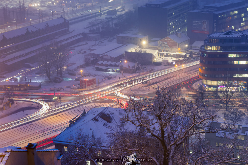 Pokud se rozhodnete fotit z kopce nebo z vysoké budovy, výše zmíněné problémy většinou řešit nemusíte. Budete ale dál od proudu aut, takže výsledné snímky budou mít jiný, klidnější charakter.