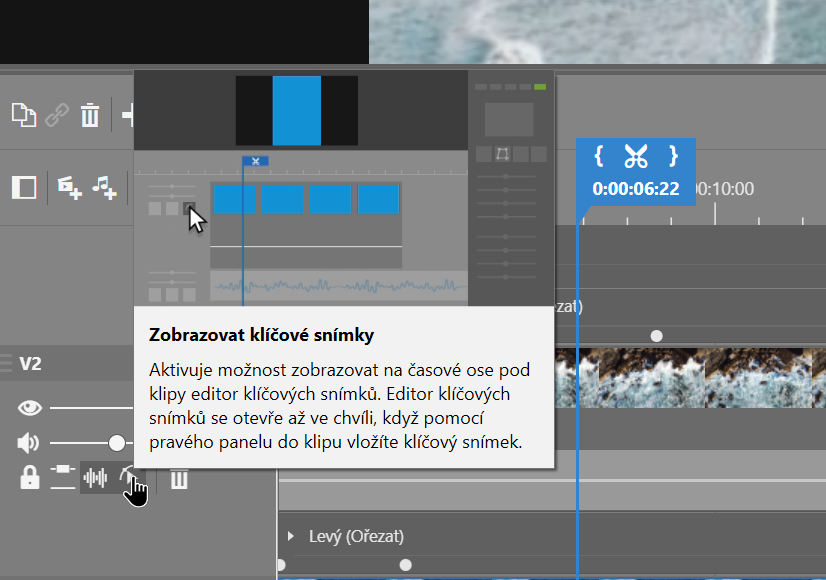 Poslední, ale neméně důležitou novinkou je funkce Zobrazovat klíčové snímky, kterou zapnete vlevo dole u vrstvy videa. Ta nabízí vložení nejrůznějších efektů, jako jsou například transformace mezi klipy.